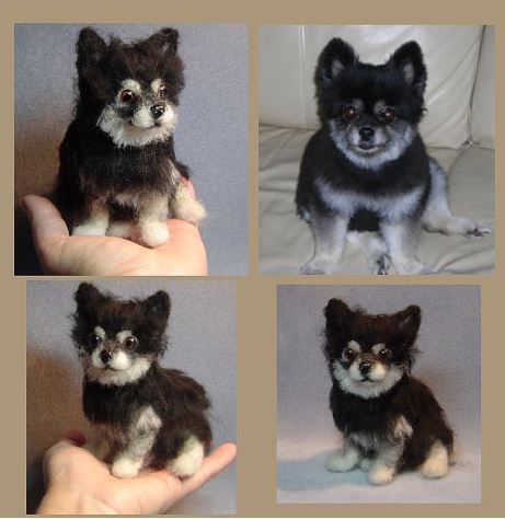 Custom dog sculptures and pet portrait memorials, needle felted animals.