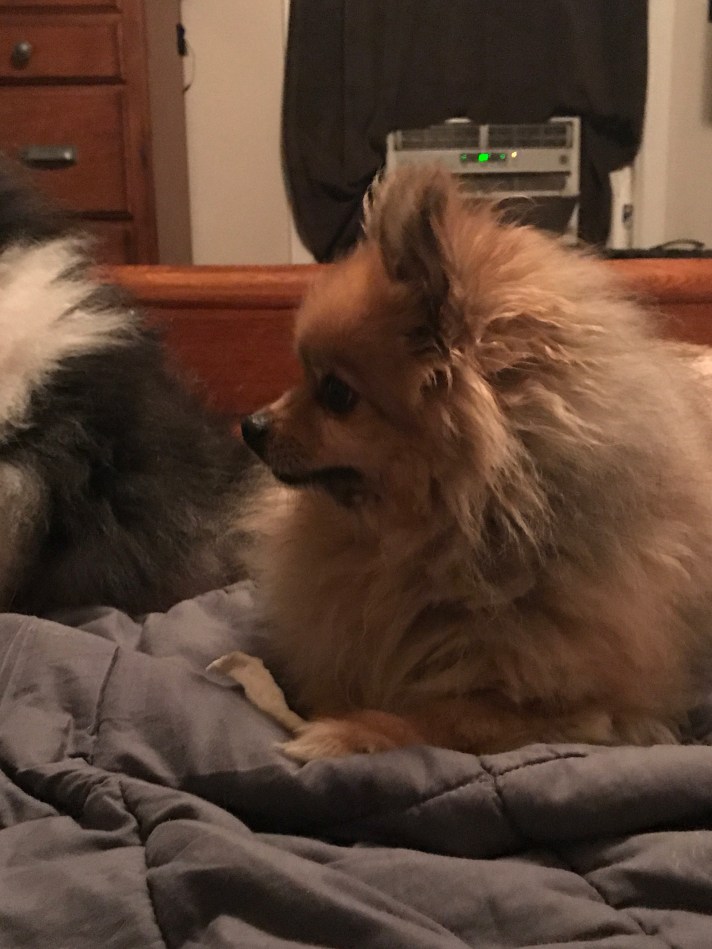 Bailey – one year after being shaved. This is all the growth that returned. He is brushed and poofed up here. His coat is patchy and his guard hairs are non-existent. He was only shaved once by necessity.