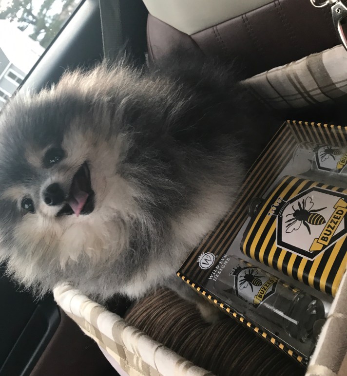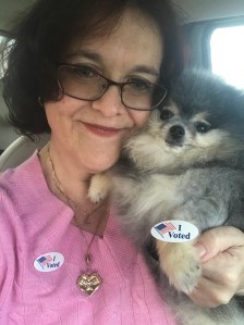 Olivia was out and about today! First she voted, then she picked up a donated item for the fundraiser!