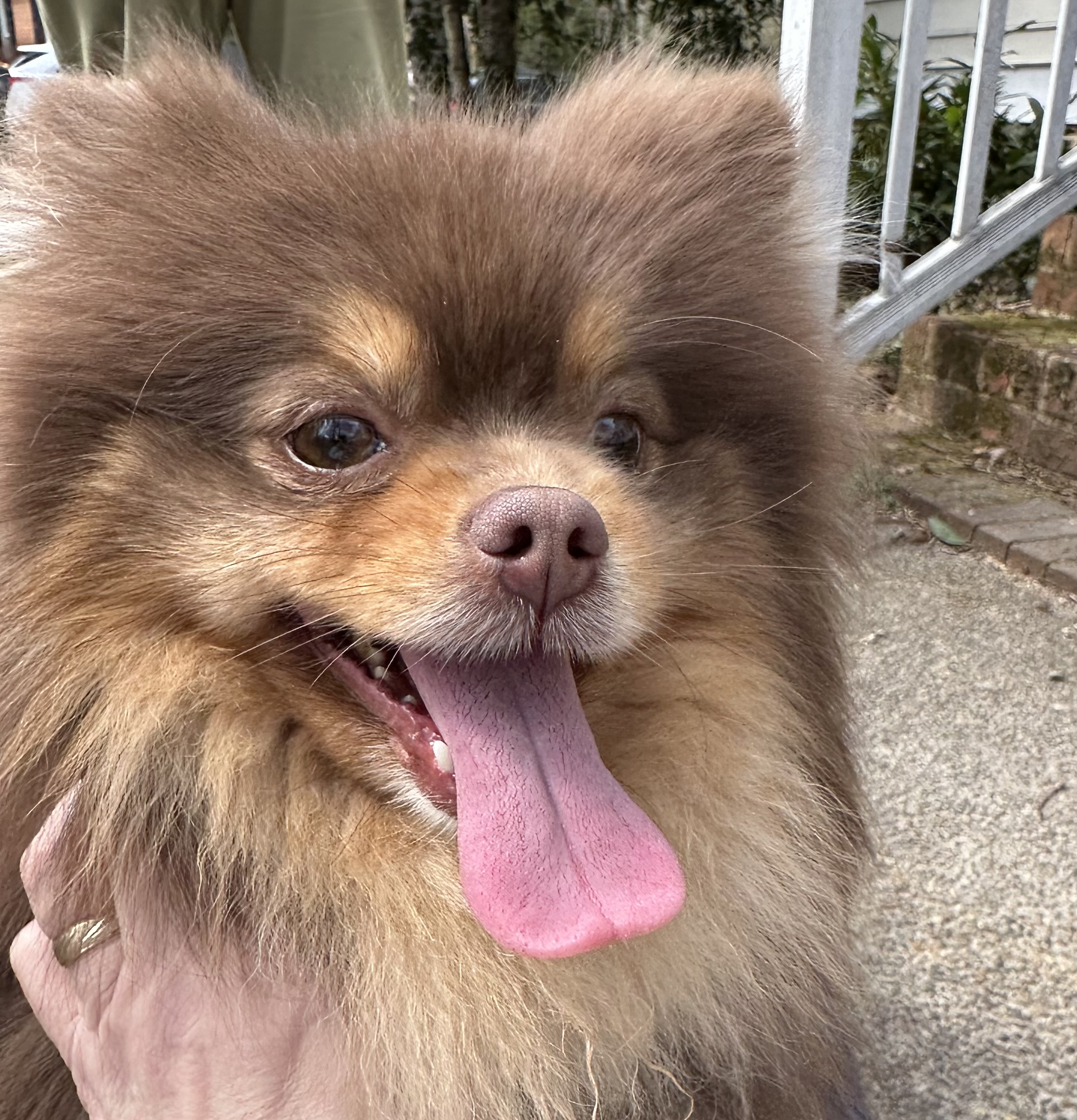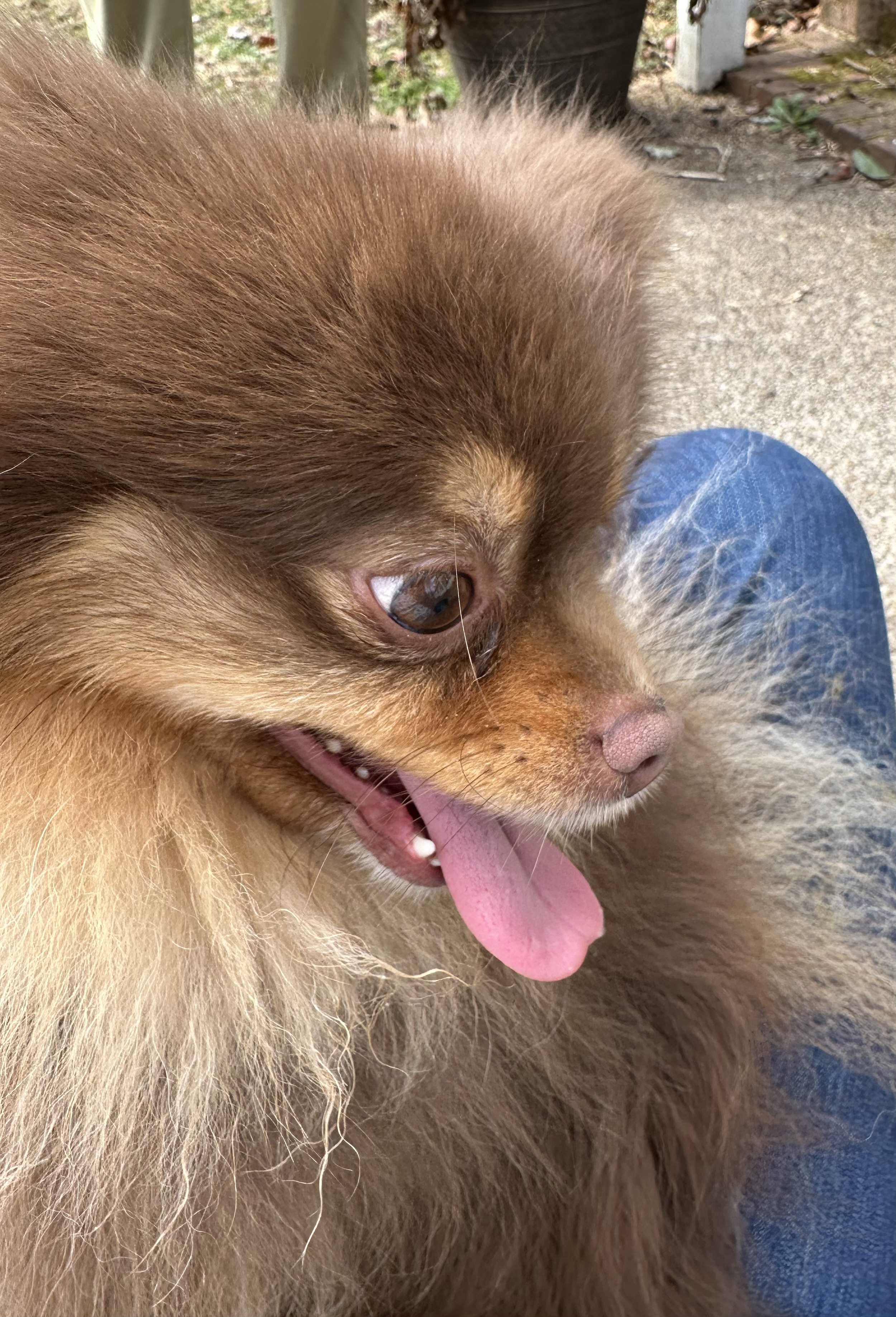 Meet Midas (aka The Chocolate Teddy Bear, Love Muffin Extraordinaire, Chunky Mocha Monkey, The Cocoa Valentino) Midas is a 2-year-old, AKC registered, chocolate and tan Pomeranian who looks like he stepped straight out of a luxury plush toy collection and into your heart. Weighing just over 11 pounds (most of it charm), he’s the living embodiment of a chocolate teddy bear — soft, sweet, and impossible to resist. With his deep golden eyes and pillowy coat, Midas is a cuddle connoisseur.