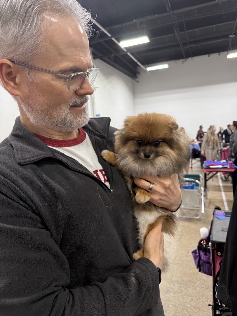 After a brief hiatus, the duo reignited their competitive spirit in January 2024 by welcoming Raven, another beautiful black Pom from Cynthia Wallen. Raven’s career soared, swiftly securing her championship under the expertise of handler Deb Wheeler. With excitement mounting, David and Mark expanded their team, acquiring Nikki and Garbo from Annie Coughlin, followed by a purchase from Tony Cabrera of Cricket—an enchanting little Pomeranian who debuted at Nationals with an impressive fourth-place finish in her class.