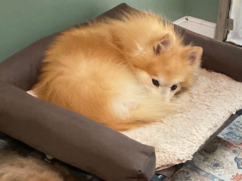 Champ is a super friendly, energetic older Pom that comes in at a very thin 8lbs! He thinks he is your personal security that must follow you to every room, and snuggles up against your legs at bedtime. With Champ by your side, you will never pee alone again. He’s got your back!